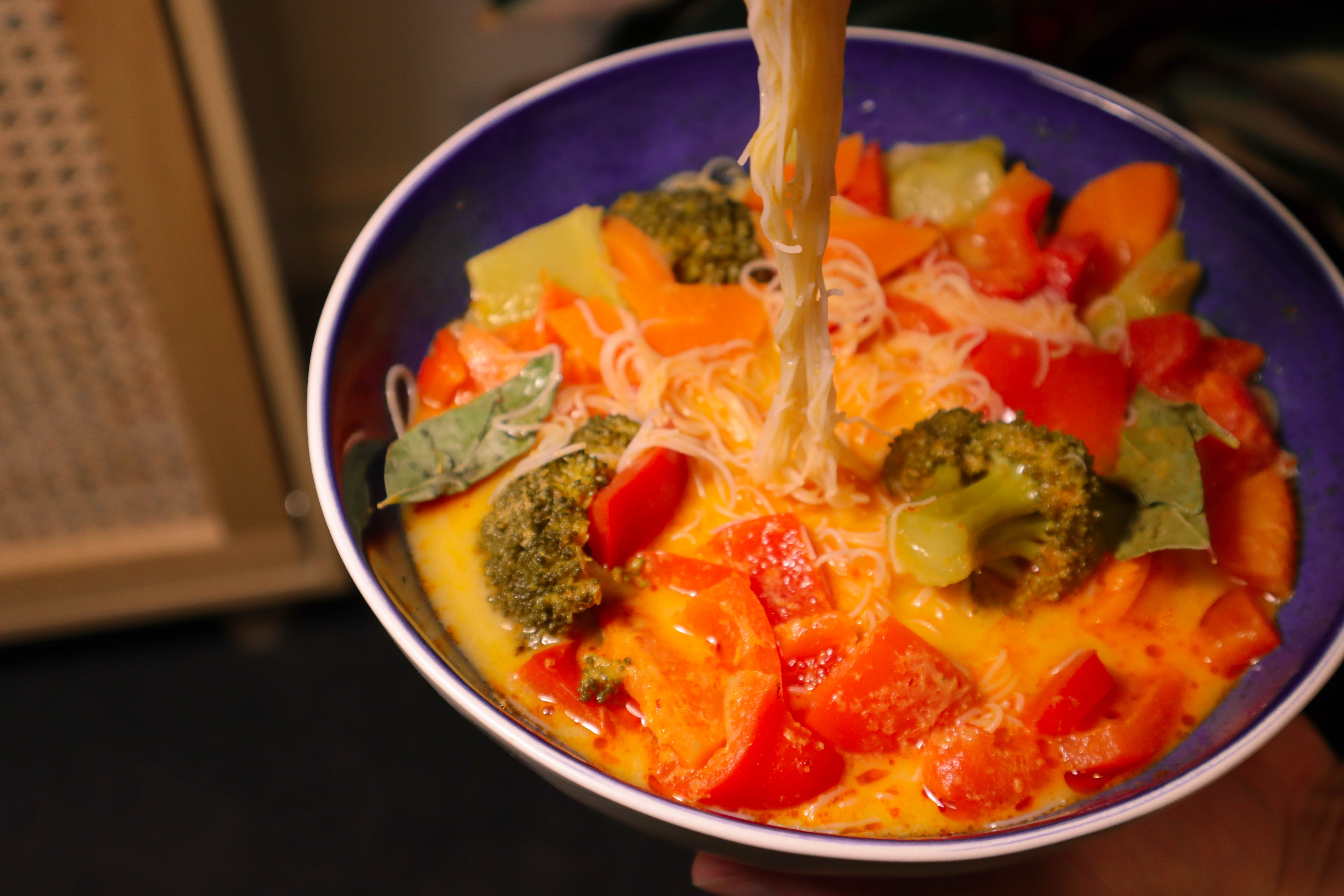 Think of perfectly cooked vegetables and your favorite noodles – just stepping in here for a moment the just oh-damn-perfect noodles in this dream should be wonderful slippery and freshly cooked rice Vermicelli.. I am just making sure we are on the same page here, back to it – so thinking of freshly cooked noodles and veggies taken in by a not at all fishy tasting but incredibly creamy and slightly hot soup that will warm you up from the inside out and release all those happy emotions that make you feel so incredibly satisfied after dinner wondering through food coma wonderland.